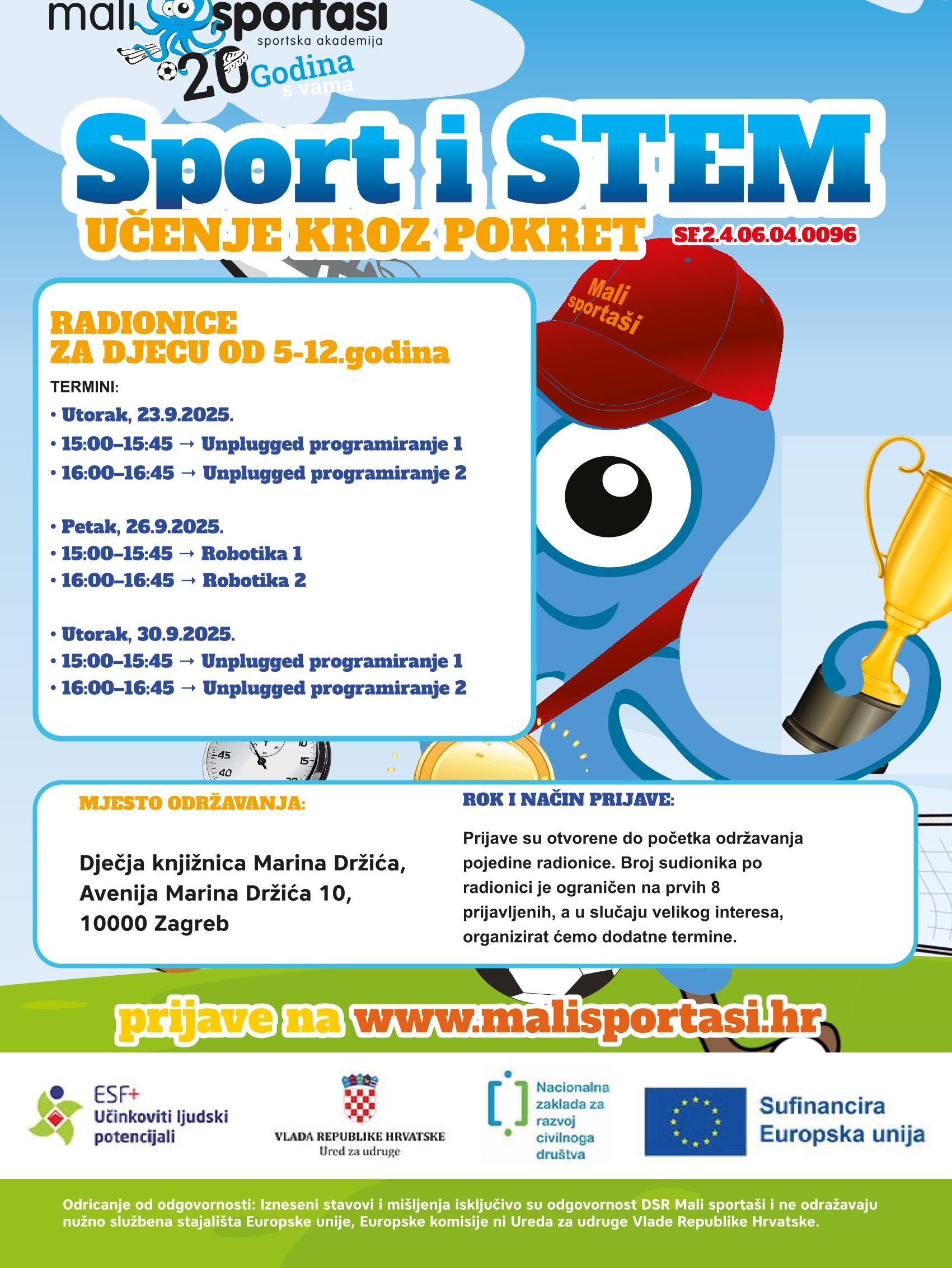 Više...3. JAVNO DOGAĐANJE u sklopu projekta SPORT i STEM: učenje kroz pokret. MJESTO ODRŽAVANJA: Maker Expo Zagreb - 26.9.2025.Pučko otvoreno učilište Zagreb, Ul. grada Vukovara 68Vrijeme održavanja: od 10.00 do 13.00 satiProjekt „SPORT I STEM: uč